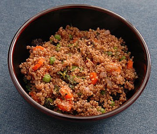 So, not only is this stuff good for you, it is TASTY. It is TASTY if you jazz it up a bit, which is easy to do with a little creativity. I make our Quinoa in a rice cooker. I always cook (steam it) in some type of broth--usually low sodium chicken broth, but I have found that Red pepper soup is excellent as well as Butternut Squash soup. Toss in a teaspoon of garlic, dice in some onion, if you like a smoky flavor toss in a few chipotle peppers and the liquid--there is a ton you can do with this stuff. Last night I cooked it with the chicken broth, salt, garlic, a dash of rosemary and some chipotle powder (the peppers can be too strong for my youngest). I made a pork tenderloin with it that I had done a mesquite rub on. I browned the meat on each side and then put a bit of broth and wine in the pot, which I then covered until done--scooped out the quinoa and poured the au jus over the top of it--YUM! I had one of the kids make a green salad, and we had an excellent meal that took all of 30 mins prep time tops and about 40 mins cook time. I figure that if I can teach my kids how to make a good quinoa recipe then when they go off on their own (which, sadly, they will) then if that's the only thing they know how to make then they should be okay. Lucky for them--I'm teaching them a few others meals.