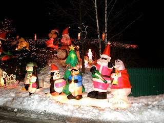 The darling JB Stanley and I are fascinated by displays of gaudy Christmas lights, so we agreed to venture out and capture our findings on film. So here are my alarming results. (Pardon the awful camera work...I was drunk off egg nog.)