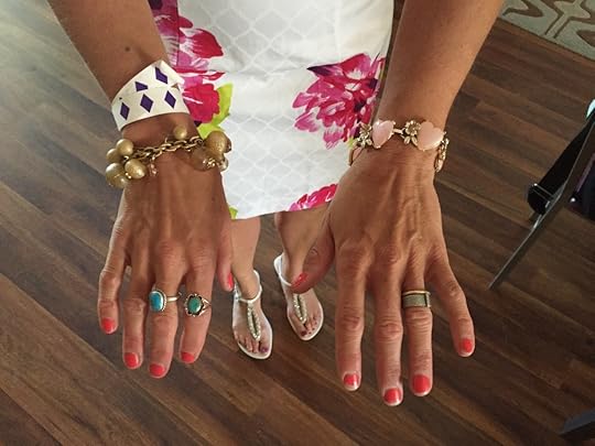 Friday night we had a booth for my Chelle Summer bags at the Girls Night Out Event that benefitted the local Ronald McDonald House. On my left wrist I wore a bracelet of my grandmother’s that my mom gave me and on the right I wore one of my mom’s funky sixties bracelets. Tomorrow will be a quiet day at my house, filled with some much needed rest, but Friday night I honored both my mom and my grandma by taking them with me as I took Chelle Summer public in a new way for the first time.