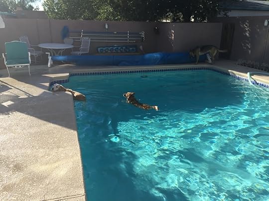 But then something happens. As I settle into my pace with the dogs running around barking and the egg timer ticking away, I find not just peace in the pool. But inspiration.
