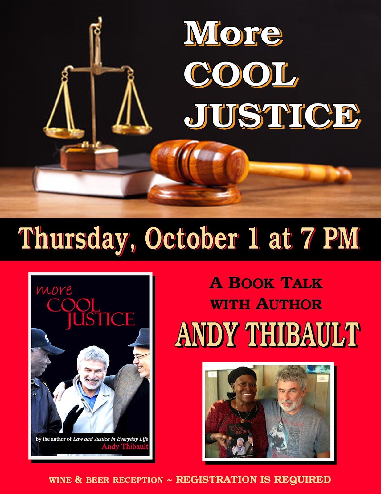 On Thursday, Oct. 1, at 7 p.m., at Oliver Wolcott Library, 160 South St., Litchfield, author and investigator Andy Thibault will read from his essay collection about problems in the criminal justice system, "More Cool Justice" (Icebox, $20). One essay helped free Bonnie Foreshaw, who had been unjustly convicted of premeditated murder. Foreshaw will speak at the event.