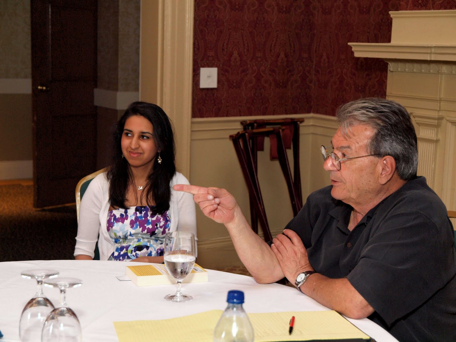 Bob Leuci on June 3, 2010 with Zeena Advani of Westhill High School, Stamford, the Fairfield County Prose Champion for the Connecticut Young Writers Trust.
