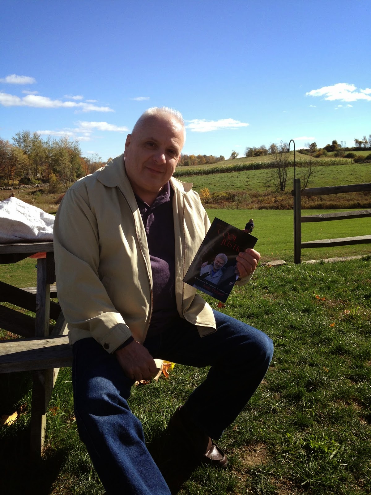 Look who's reading #moreCOOLJUSTICE now, outside, on a brisk fall day ...