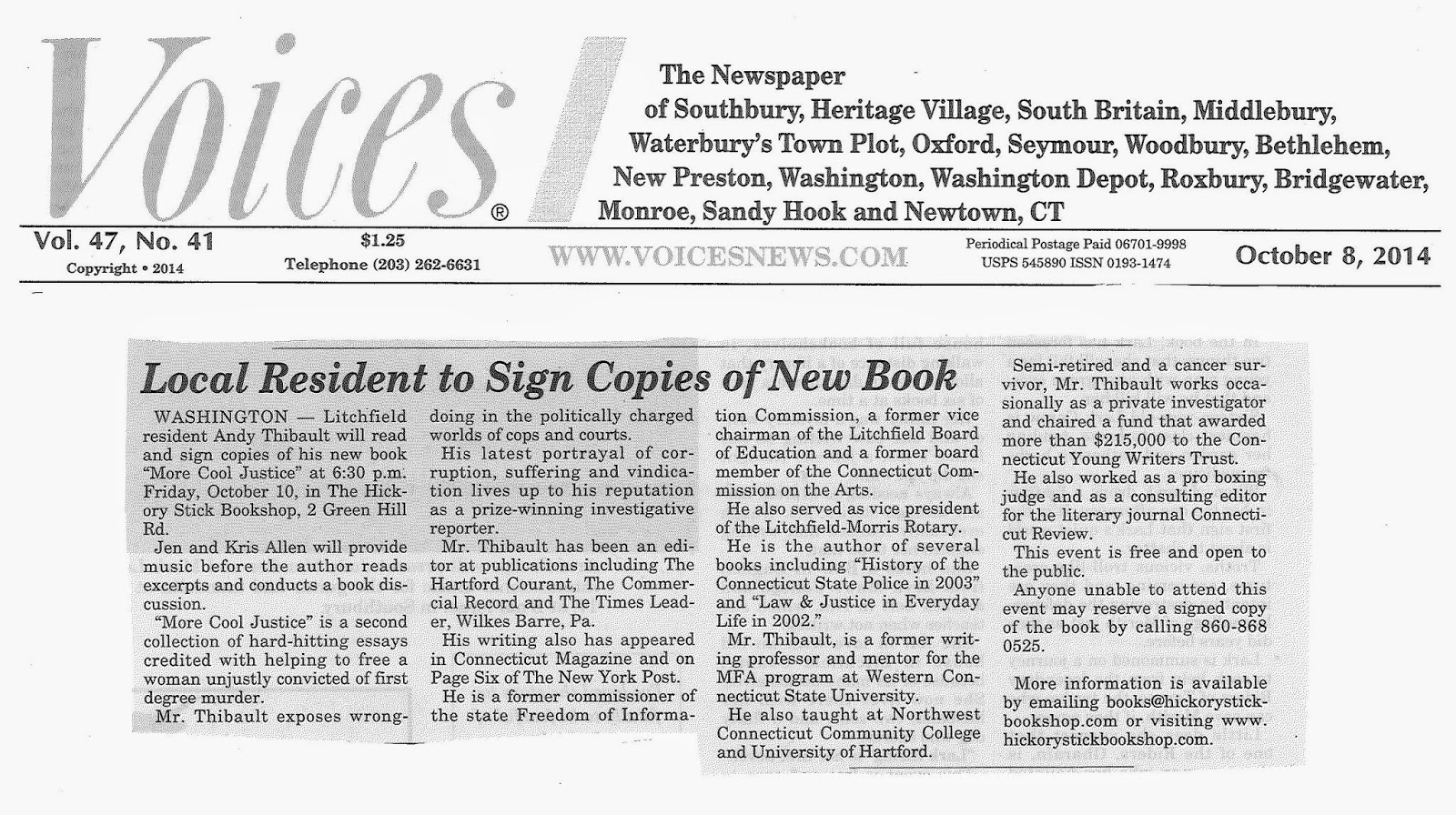 . @HartfordCourant 10-8-14: Authors at #HickoryStickBookshop today and thru weekend ...