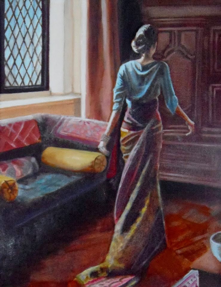 Norwich, CT artist Merrill Park Keeley attended Paier Art School in Hamden and had lessons with Foster Caddell during summer vacations while in high school. While working as a commercial artist she created illustrations for several local business publications. She likes to work with oils, watercolors, and frescoes, and has done many portraits. Her oil on canvas is entitled 'Tapestry.'