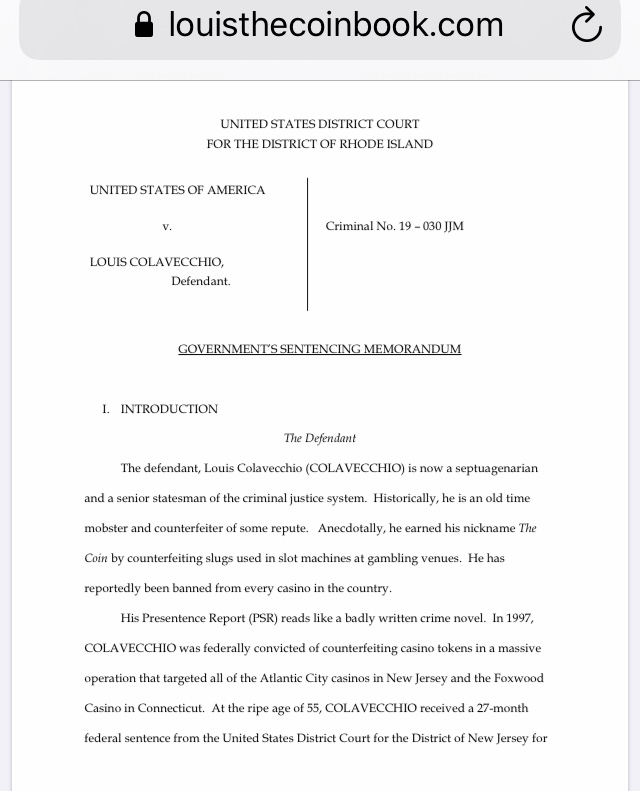 I first heard of Louis Colavecchio in my former life as a Connecticut State Police Detective Sergeant. Assigned to the State Police Casino Unit, one of the duties was keeping intelligence flowing between law enforcement agencies throughout the country and my own regarding criminal activity in the casino industry. A routine call from a colleague with the New Jersey State Police started me on a two-year-long case involving dozens of casinos, half a dozen states and a lot of overtime. He told me a story of counterfeit slot machine tokens, the suspect and a Connecticut connection. When the case was wrapped up by numerous jurisdictions, I saw a face I had seen many times before. This was a very unique crime involving an even more unique individual, Louis The Coin Colavecchio.