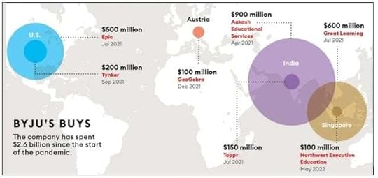 At its peak, BYJU’s went on a buying spree, acquiring 19 companies for more than $2.6 billion. The goal was to expand its main products and strengthen its presence in the United States. The company added new areas such as coding, job training and lifelong learning to its offerings and even pushed into the Middle East by becoming the official sponsor of the 2022 FIFA World Cup in Qatar.