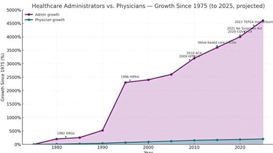 So, what can be done now? One suggestion is a conditional extension of the subsidies combined with measures to reduce costs, based on an understanding of why costs are outrageous. The graph below shows the enormous increase in administrators, and the legislation associated with it.