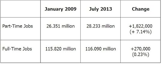 In August 2013, the House Ways and Means Committee documented that seven out of every eight new employees under Obama have been part-time employees.