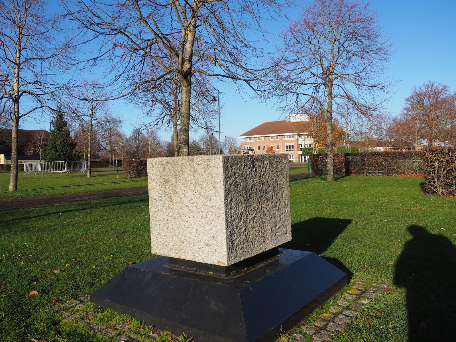 Naturally enough there are public gardens in Letchworth. There are the Broadway Gardens, a name they got at the time of the Letchworth centenary. For while before that were the John F Kennedy Gardens – a fact memorialized by this block of (I think) granite: