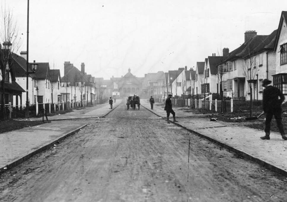 This picture above taken in 1912 suggests it wasn’t entirely a rural idyll – and those front gardens look extremely perfunctory. The picture below looks far more as though the inhabitants might, at least, be trying to feed themselves from their own gardens.