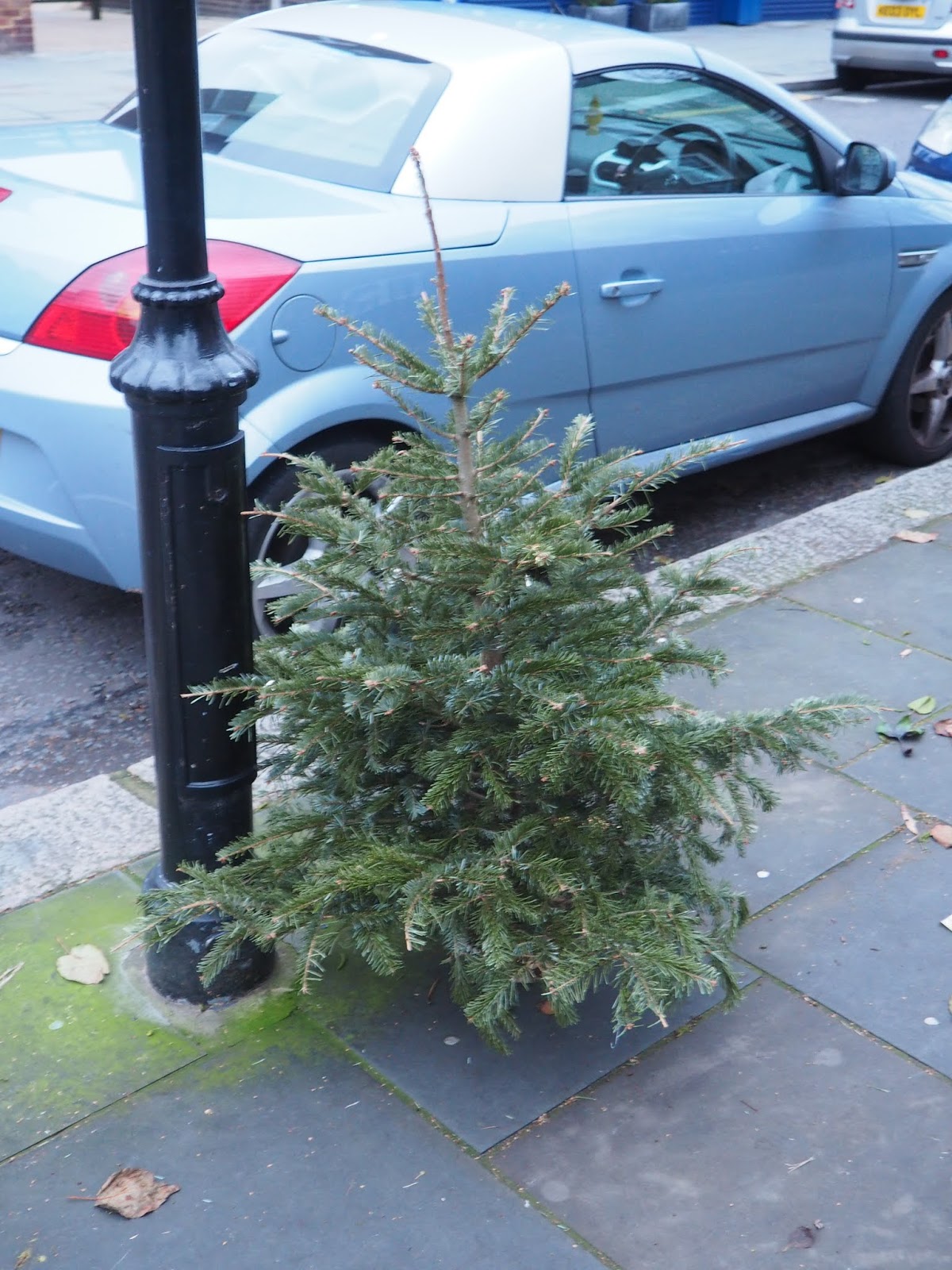 And I can’t decide if this was a kind of altruism, that he’d left the trees there so that the poor and needy could pick one up for free, or whether it was just an advanced form of littering and dumping, and the dealer just couldn’t be arsed to take them away with him. Maybe he had mixed feelings. Many do at Christmas.
