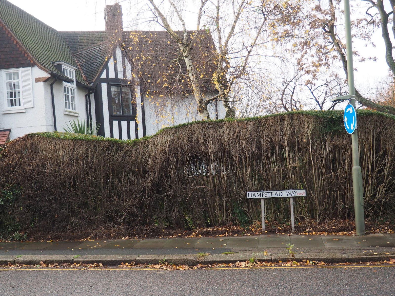However, and it’s a biggish however, the south eastern boundary of the Suburb abuts the Hampstead Heath extension and between them is a structure know as the Great Wall, which some sources will tell you is reminiscent of a medieval town. You can no doubt pick quite a few metaphors out of that, but the one that struck me was that sometimes a hedge apparent that sometimes a hedge just isn’t enough of a barrier between you and the rest of the world.
