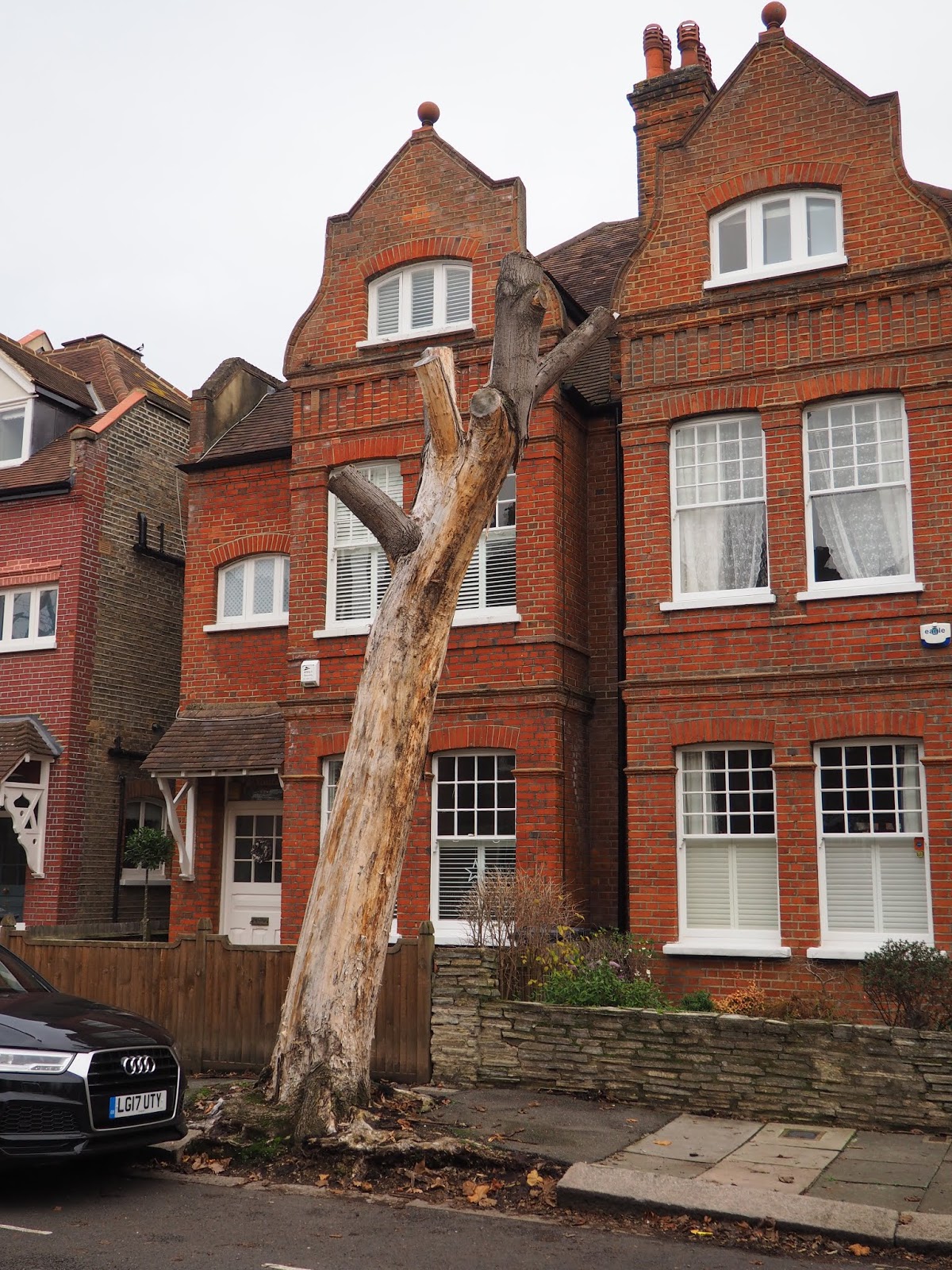 Bedford Park is now a conservation area which means there are strict rules about what you can do to your house, and about what you can do to your trees. Under Section 211 of the Town and Country Planning Act 1990 “all trees in the conservation area are protected by law. It is an offence to deliberately damage or destroy a tree by cutting down, topping, lopping, uprooting or by any other means without permission from the local planning authority. … Six weeks’ notice must be given before any work is started.”