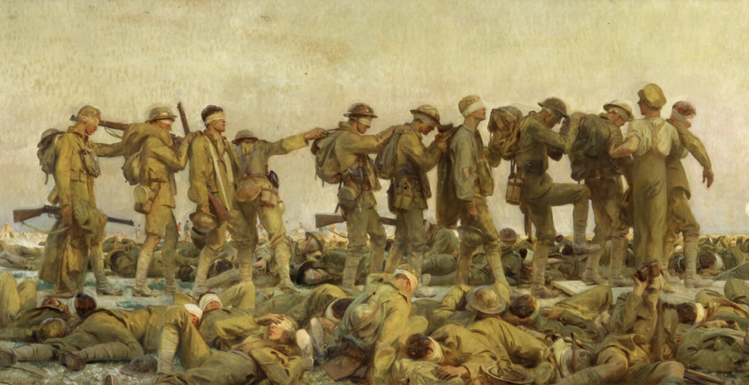 As we mark the 100 year anniversary of end of the First World War (“So then we all lived in peace, did we dad?”), I saw this painting by John Singer Sergeant titled “Gassed,” painted in 1919.