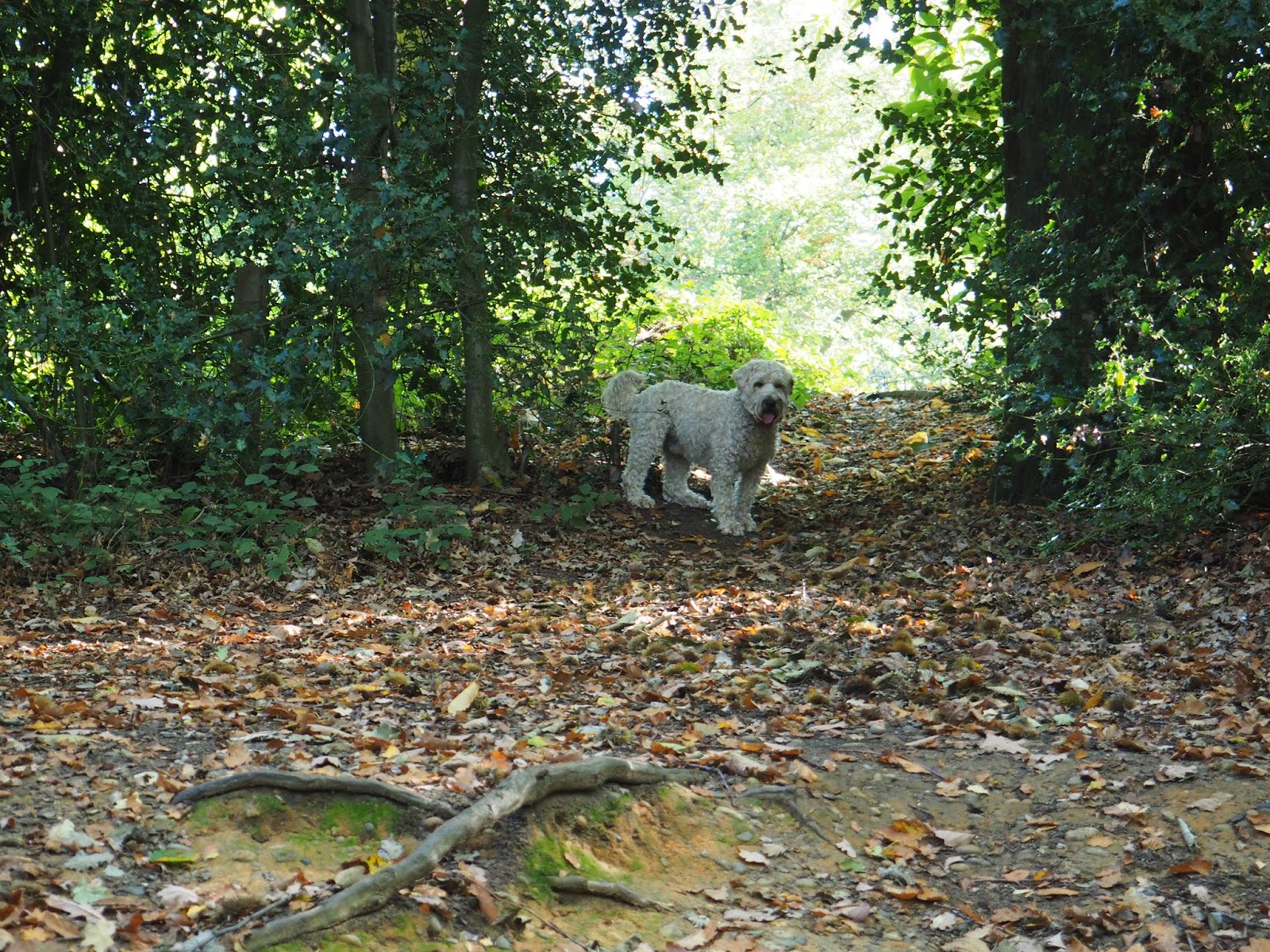 I’ve been walking in Oxleas Wood, on the top of Shooter’s Hill in Greenwich. I was with my pal Hugh and his dog Fergus. This is Fergus: