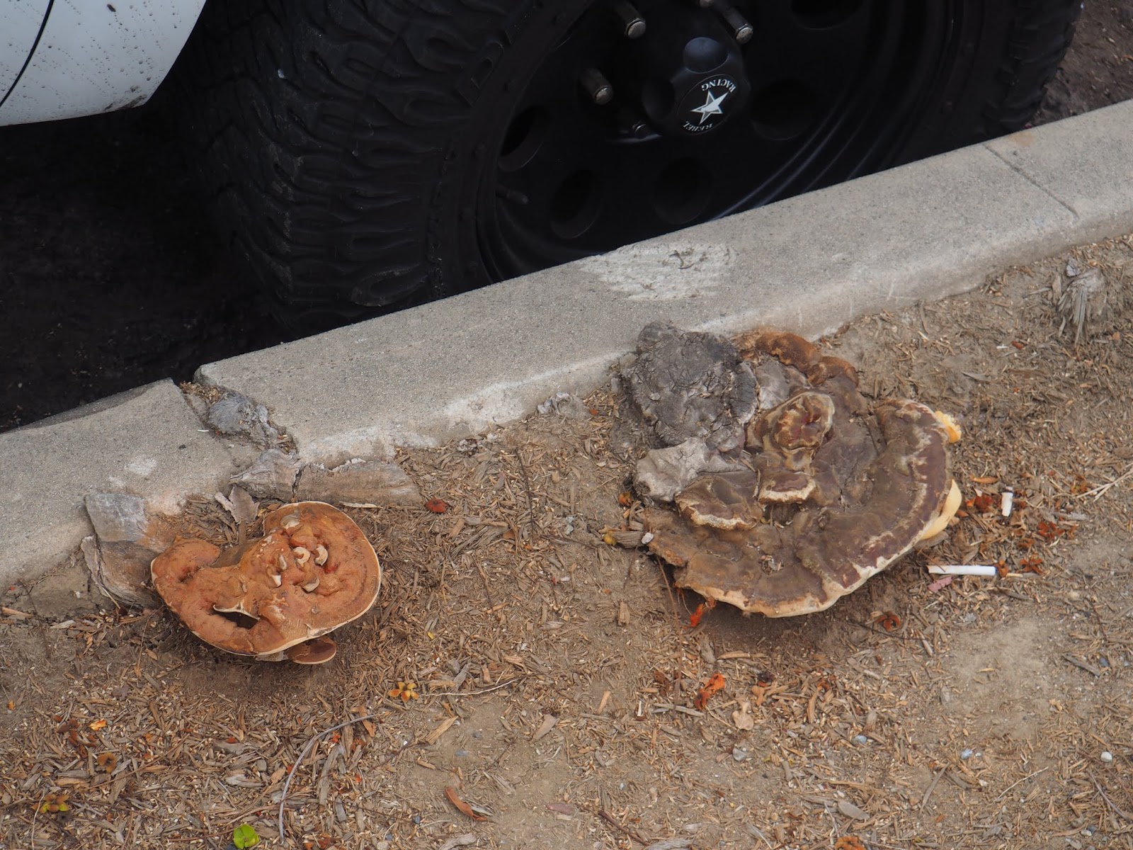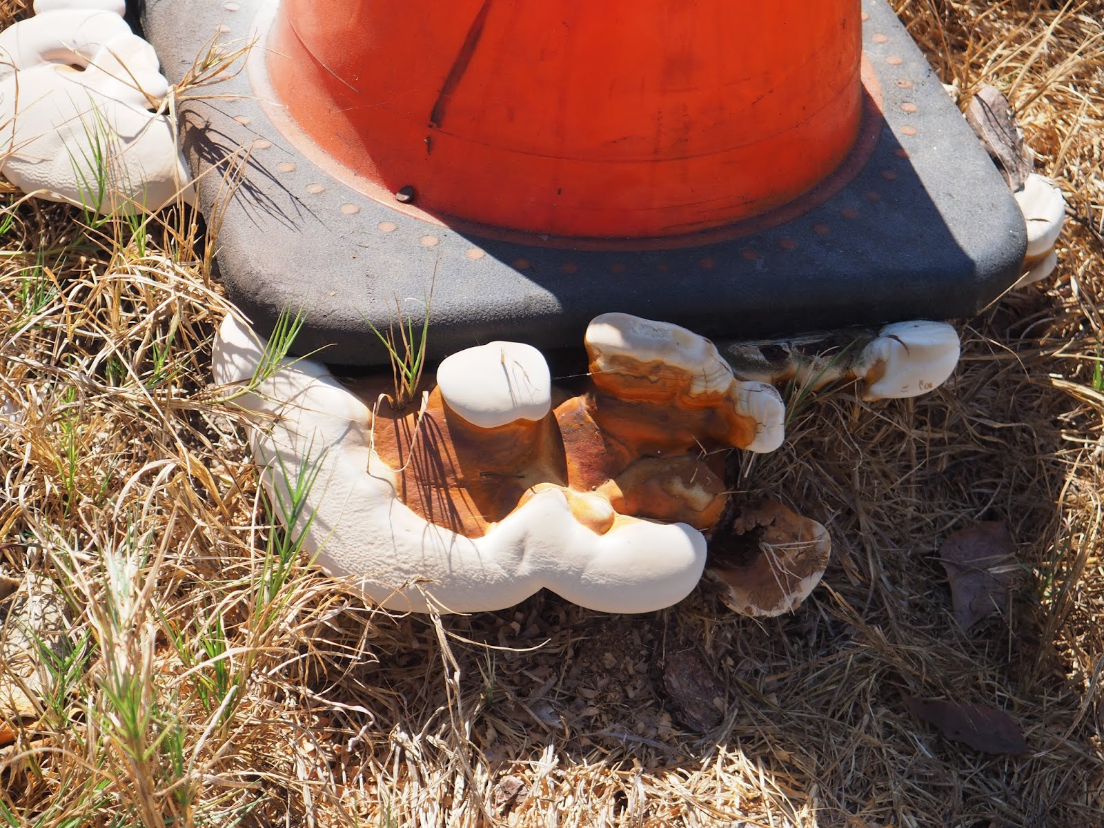 This is in East Hollywood, fungus thriving as it coexists with a traffic cone: