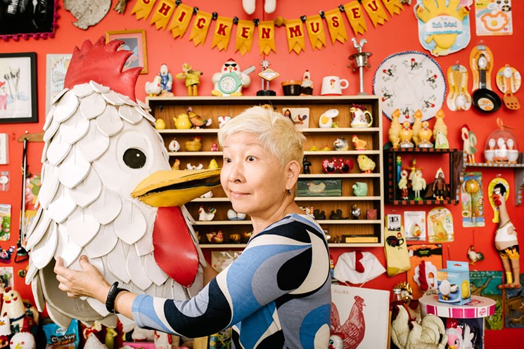 Chicken Boy – a human with a chicken head. customized from a fiberglass model of Paul Bunyon - first appeared in the 1960s on top of a fried chicken restaurant in downtown Los Angeles. The restaurant owner died and the model was taken down, and it was acquired by Amy Inouye – a book designer and art director. It went into storage for twenty odd years, eventually being resurrected on the roof of Inouye’s “Future Studio,” where for planning purposes it’s considered an "art installation," apparently.