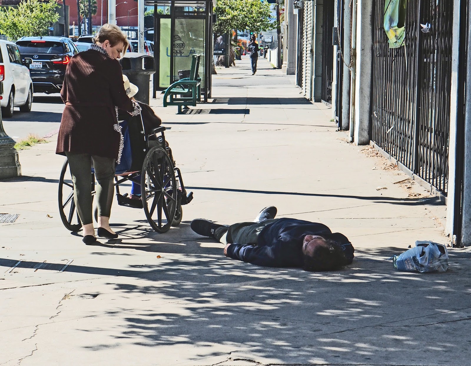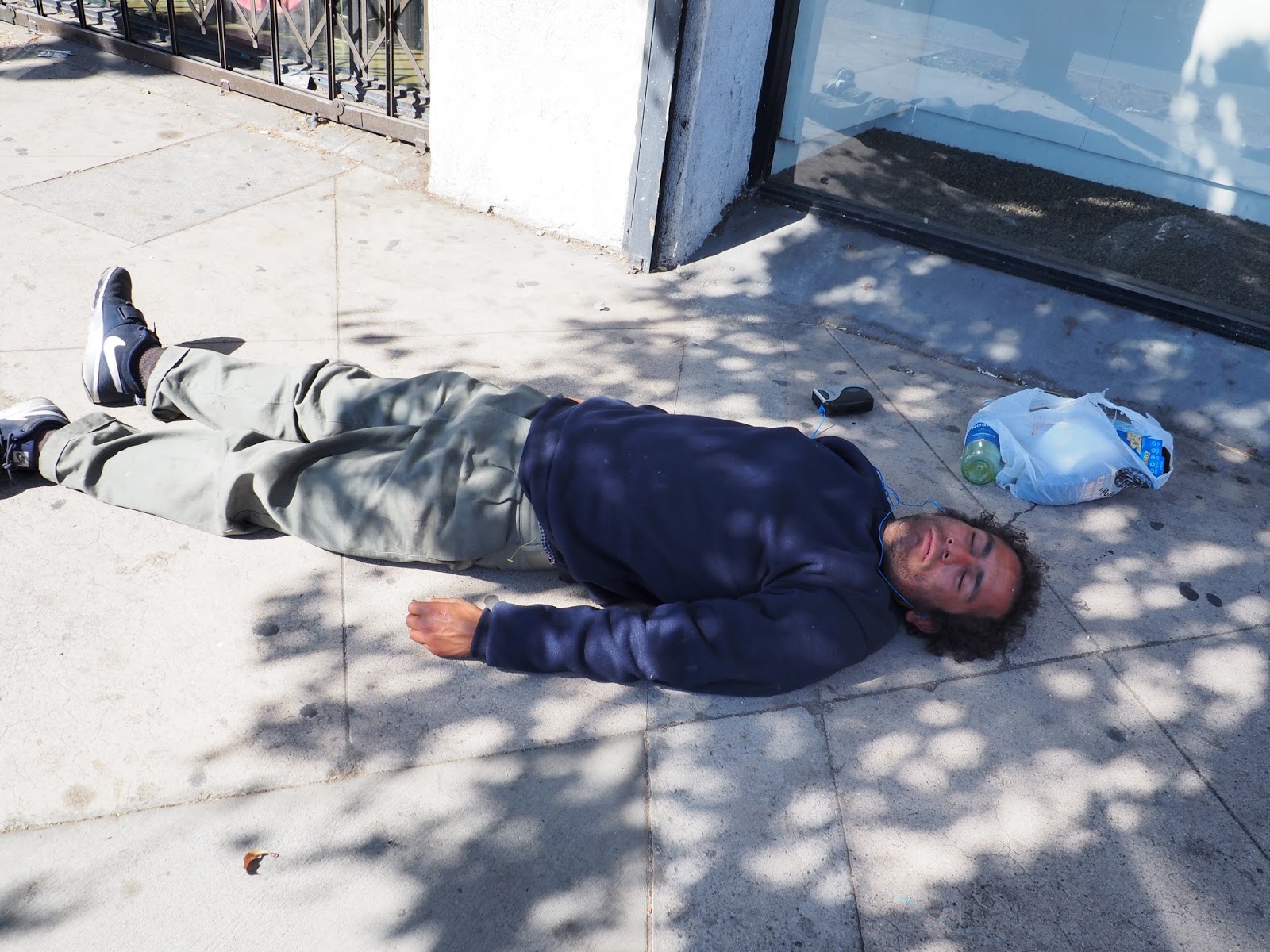 I can’t swear that the fellow below on the sidewalk is an opium eater, but I’d guess he’s probably taken an opiate if not an opioid.