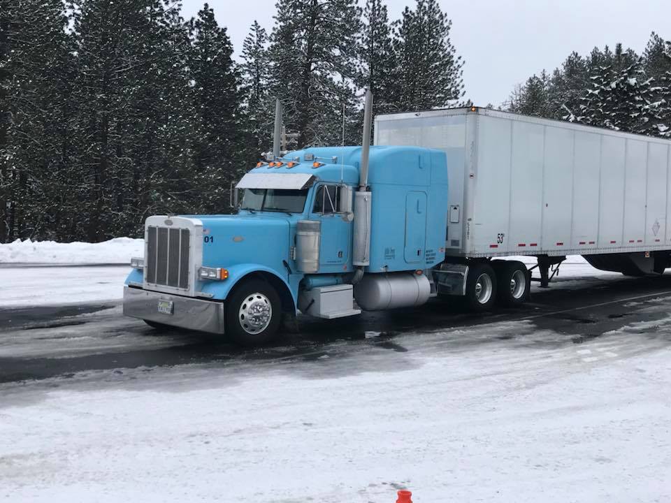 Almost certainly not Jacob Cartwright's truck, but it's from the company he works for.The story Is that he punched the wrong address into his GPS and so it sent him up the wrong road. He became aware of that sooner or later, and he had the GPS recalculate, but then it sent him up a forest service road which started out paved but then became dirt and so the truck got stuck. Cell phone service was patchy and in any case his battery had died, so he got out of the truck and started walking to his home in La Grande, which at that point was about 36 miles away.