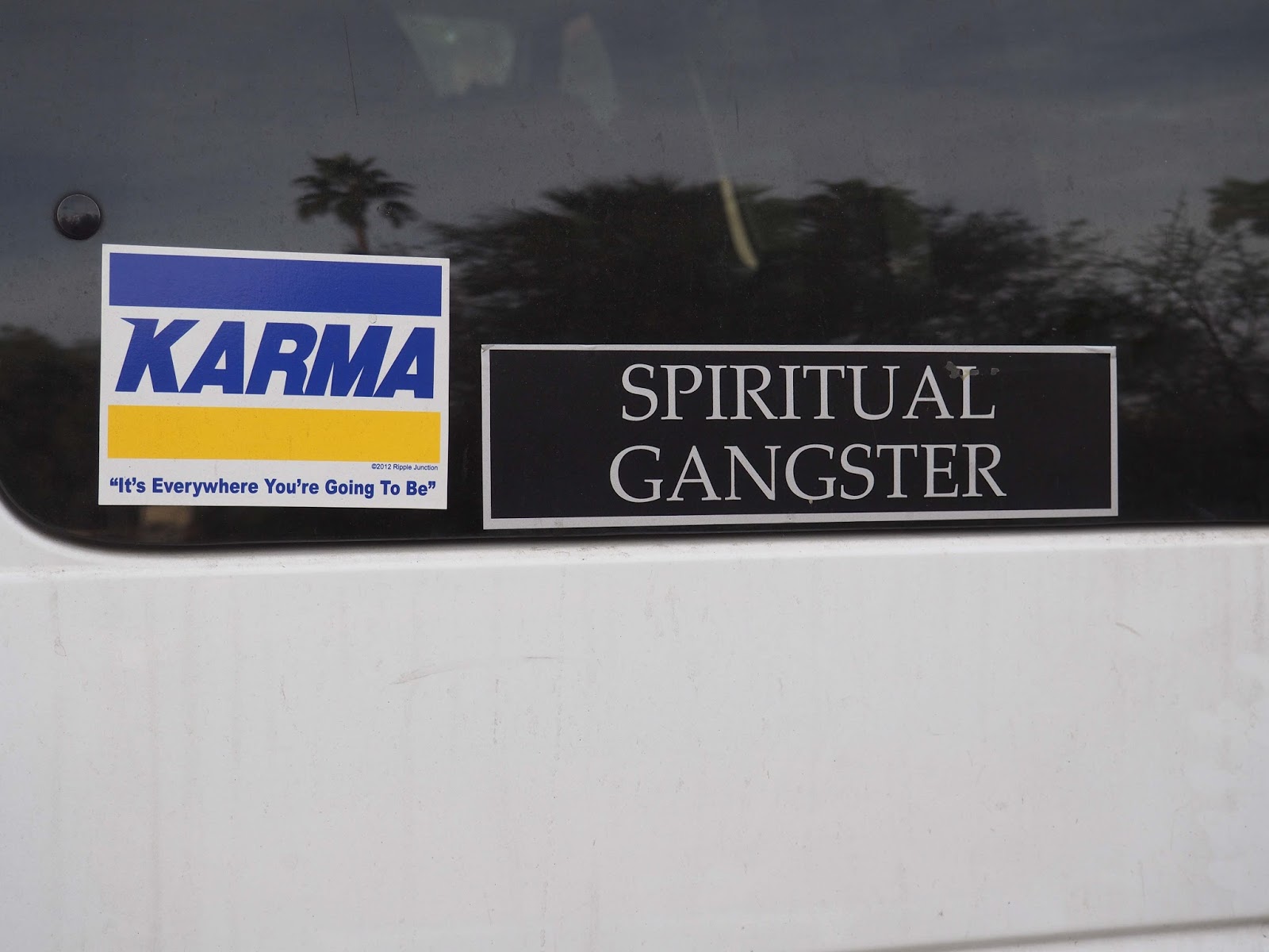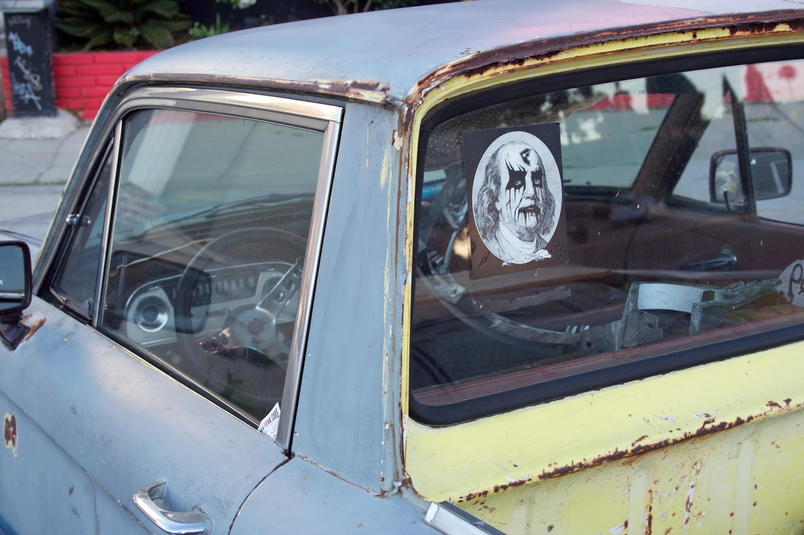 I’ve always been skeptical about this whole “the car you drive expresses your personality” thing, but in the end, one way or another, I guess it does, whether you want it to or not. And of course one way you can further express your personality, if you have one, is to put a sticker on the bumper or the back window of your car. Religion, sports teams, political affiliations, are the obvious things to announce to the world, but some are more enigmatic than that.