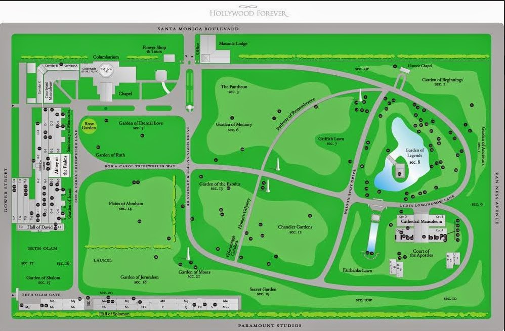 Hollywood Forever is divided into a series of areas, mostly designated as "gardens." There’s the Garden of Memory, the Garden of Eternal Love, the Chandler Garden (no, not Raymond).