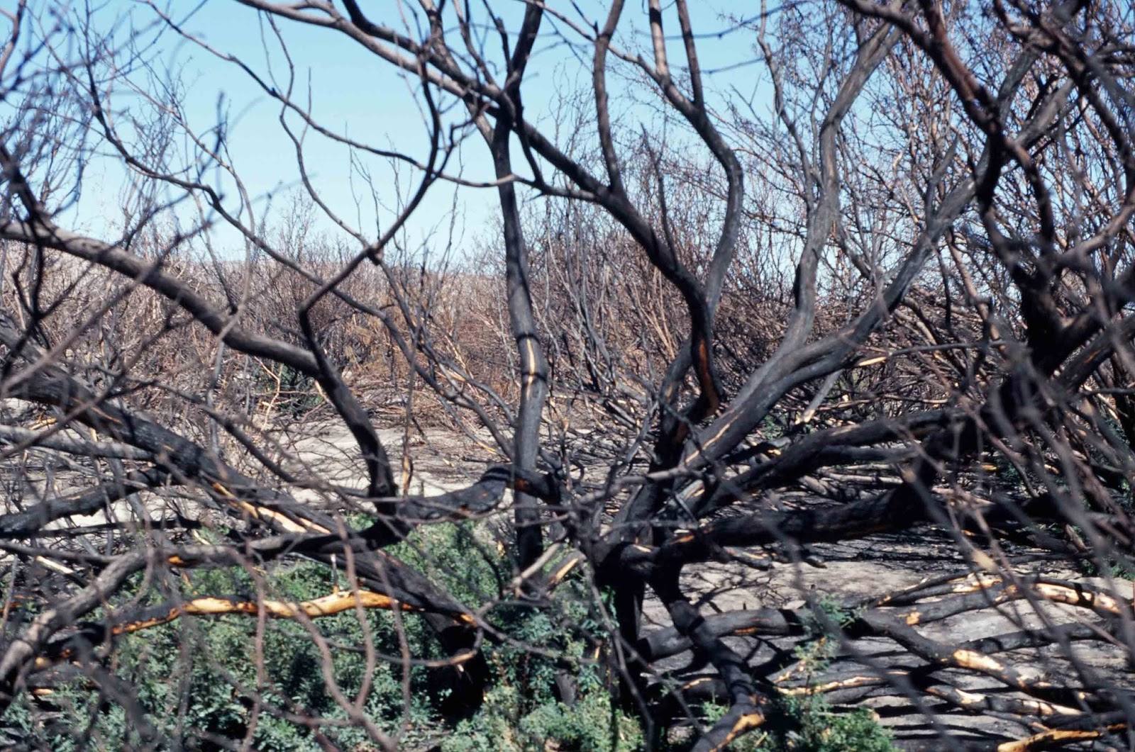 As you see in the pictures I took at the time (above and below), there was still plenty of evidence of the blaze, and some startling contrasts between the burned, blackened trees and the new growth. According to the Preserve’s website there were signs of growth within a week of the fire being extinguished.