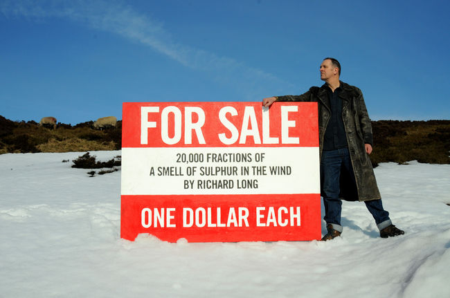 Once the last segment’s been sold, Drummond will supposedly take the $20,000, attempt the walk again and (assuming he succeeds, at least in part) he’ll bury the money in the center of the stone circle depicted in the Richard Long photograph, again assuming it’s still there.