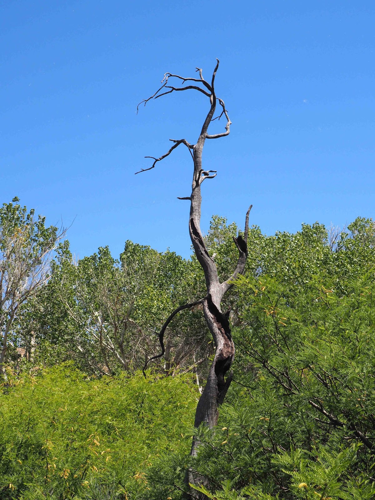And here – and I didn’t realize I’d photographed it before until I got home and checked the archive – are two photographs of the same dead tree taken a decade or so apart. The tree is still dead, of course, it’s lost some of its extremities, but it’s still standing, looking resolute and noble (and anthropomorphic), right next to the boardwalk where hikers pass all the time, You can pick your own metaphors out of that one.