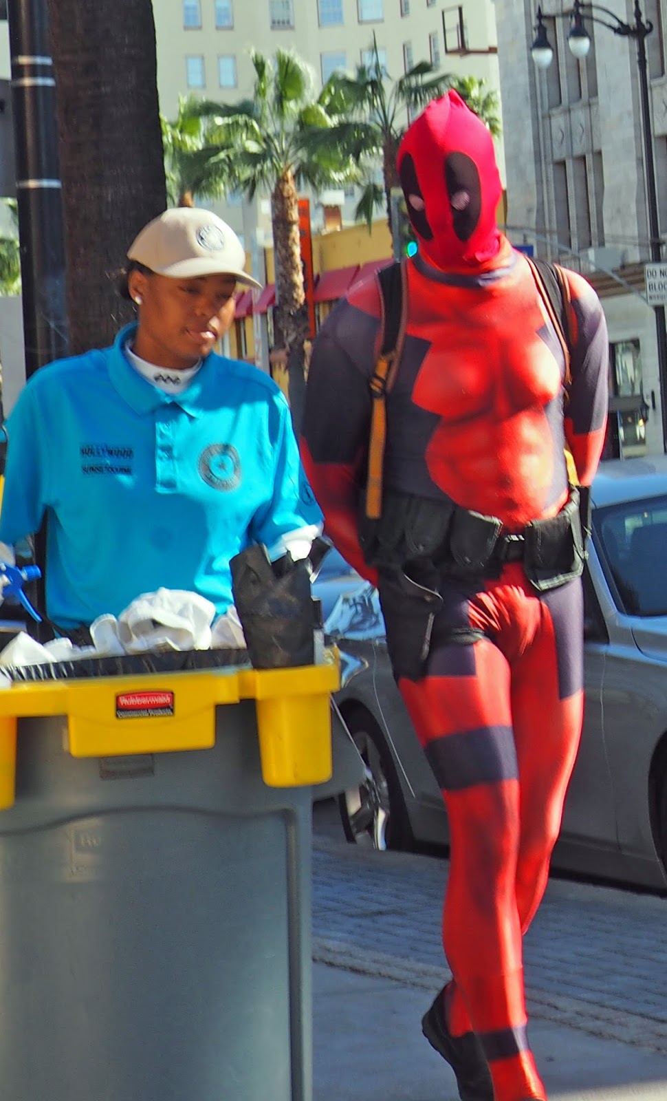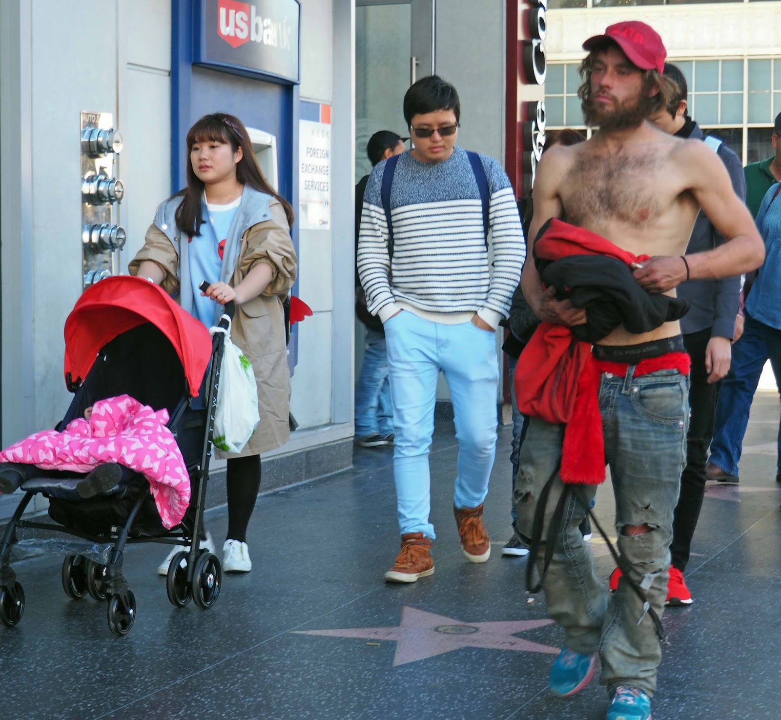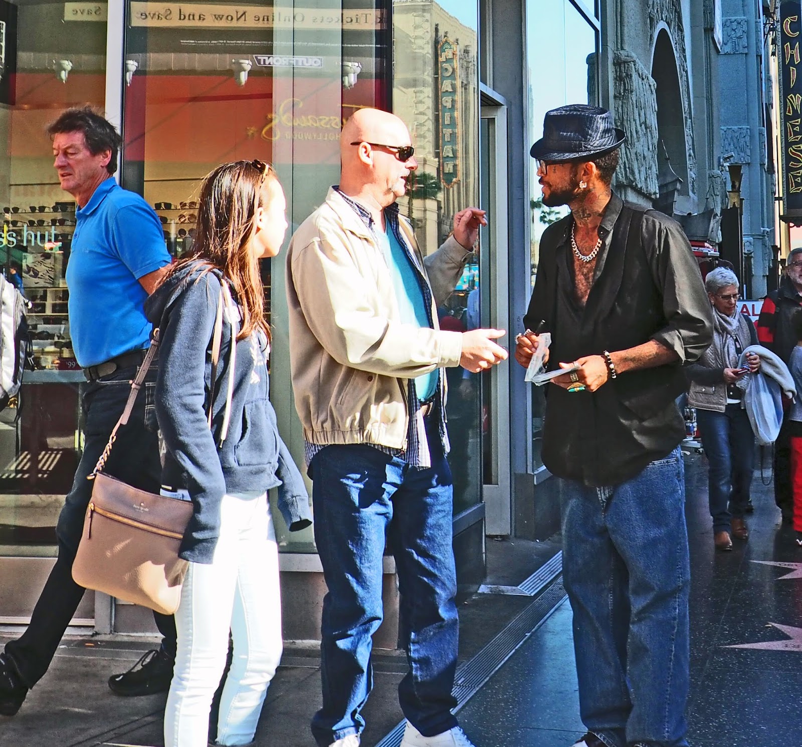There was plenty of other action on the post-Christmas, pre-New Year Boulevard that day. It is, of course, a common complaint that Los Angeles lacks street life, yet here you could find the homeless, the drug-addled, people dressed up as Batman or Minnie Mouse, guys drumming on empty buckets, panhandlers - at least one of them in a wheelchair exposing his stump: all of these people more than willing to extract a little gelt from the tourists.