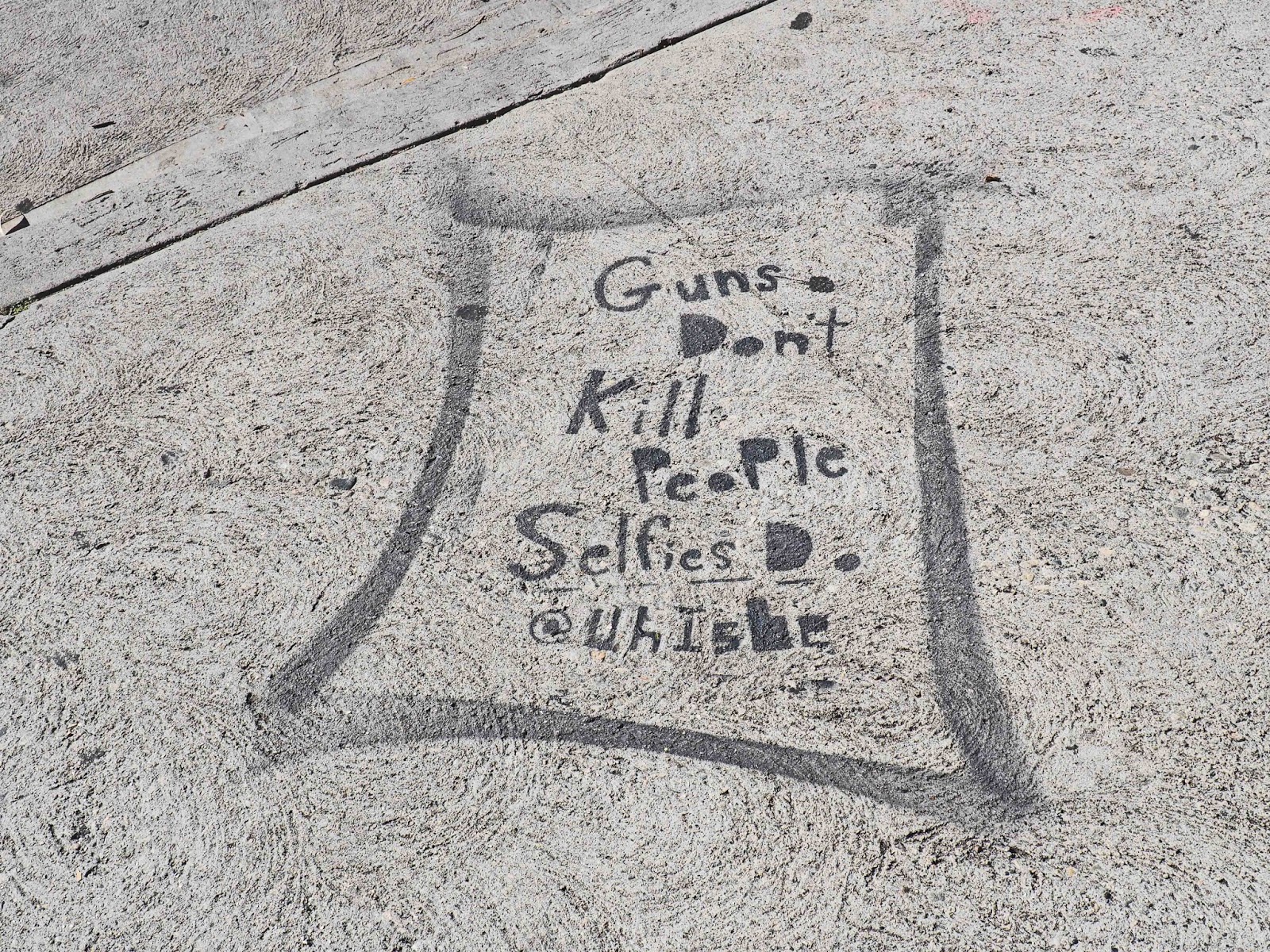 And of course people were taking lots of photographs, of the stars in the sidewalk, of each other, and of course of themselves. For these folks there was a stern warning stenciled on the ground.