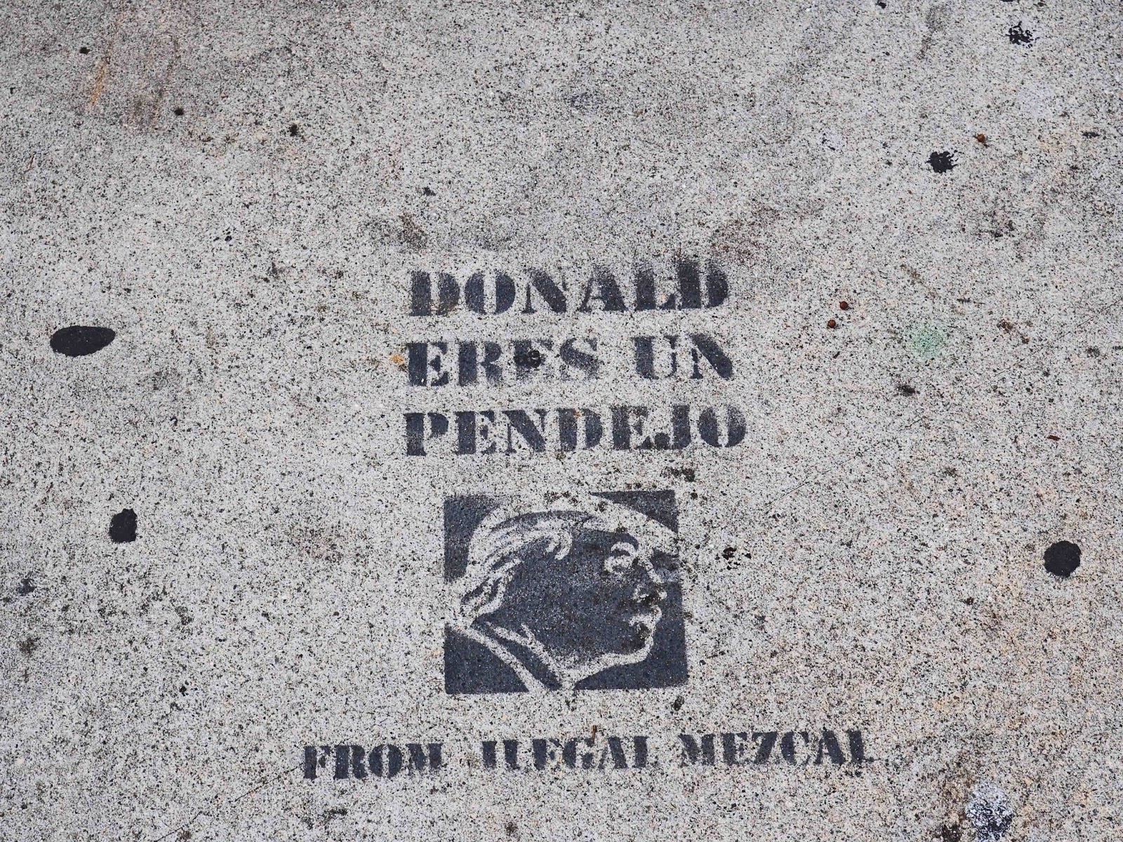 “Pendejo,” as I understand it, means a fool or an idiot, though it also (and simultaneously) means a single pubic hair. Good knockabout, activist stuff you might think, but it turns out that “Ilegal Mescal” is just a brand of liquor which rather spoils the “guerilla” effect.