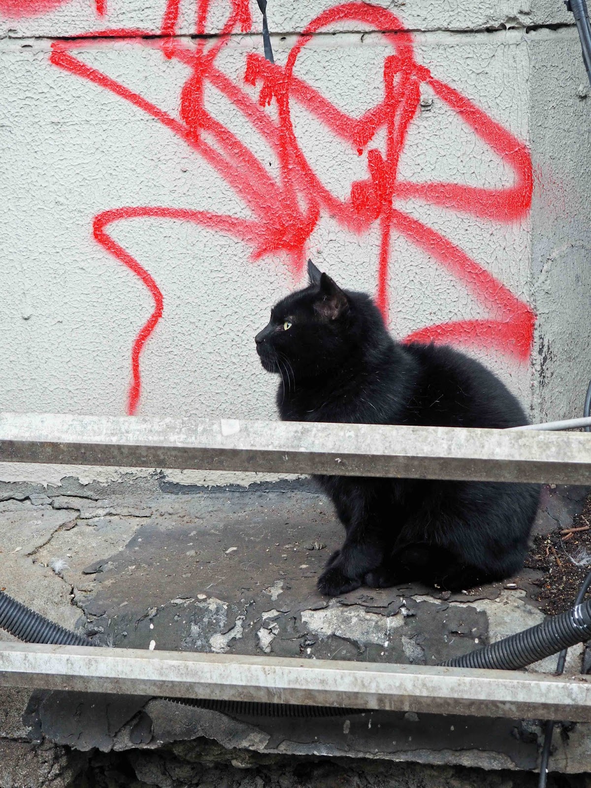 It was by no means hole-free, they’re digging things up all over the place there too and it wasn’t absolutely cat-free either. I found this piece of terra-art – Felix painted, or I suppose stenciled, on the ground. It was the only cat I found. The only one I needed to count.