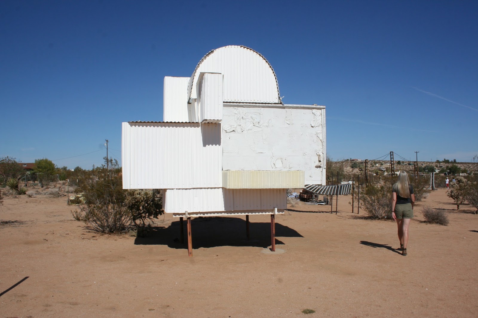 In 1938 Congress passed the Small-Tract Homestead Act, giving away five-acre parcels of land to those who agreed to build a small, habitable structure within two years. The scheme didn’t really take off until after World War II; but once that was out of the way, there was a minor building boom in the Mojave. People like things that are free. Some built their own cabins from scratch. But local contractors also came up with schemes for ready-designed buildings that fit the government guidelines.