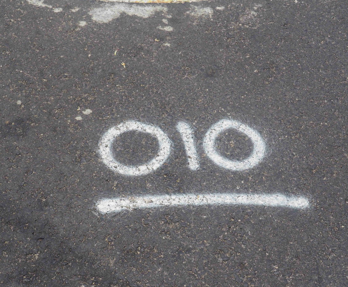I’ve been thinking a lot about holes lately. The other day I found a man spraying what you might call terraglyphs, or in any case strange symbols, on the road surface outside the front gate, tracking the route of the gas lines, he explained. The symbols looked like this:
