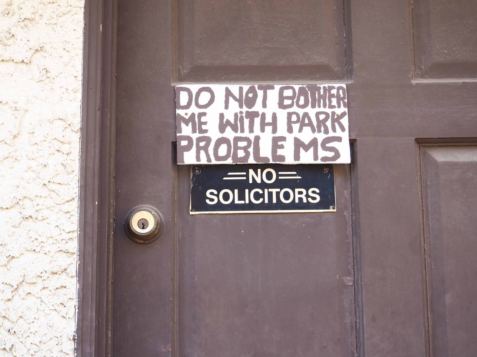 But the spirit of good cheer is not universal. This sign appears on the door of the last house before you get to one of the entrances to Griffith Park, and you can understand the guy’s sentiments whatever the time of year: