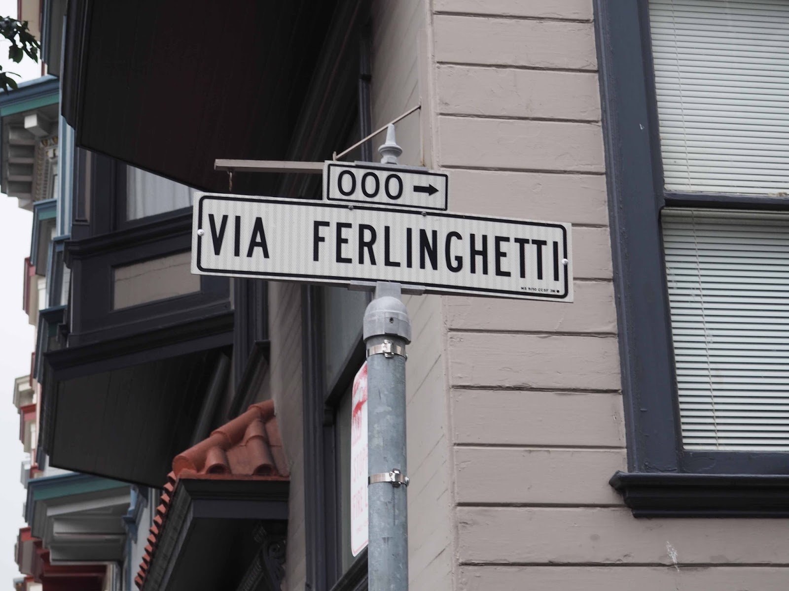 And Ferlinghetti also has a street named after him, Via Ferlinghetti, less visited than Kerouac Alley I’m sure, but now on the list of places I have to visit next time I’m in San Francisco.