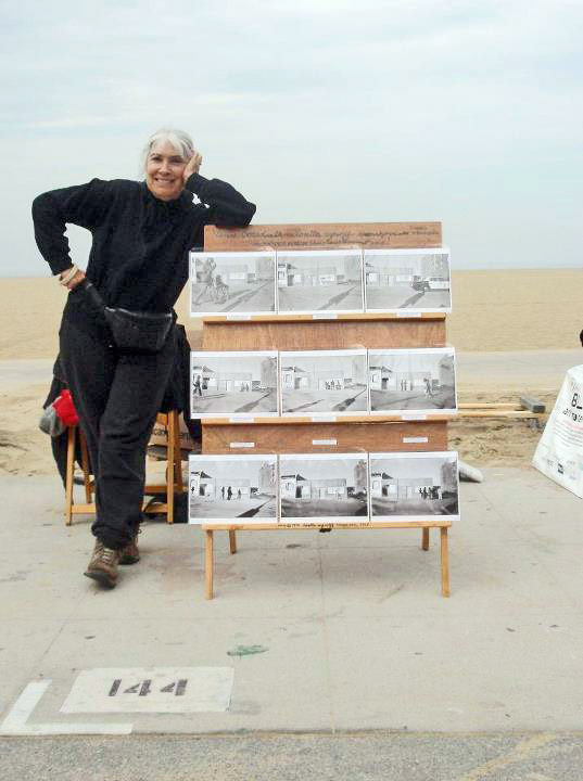 Well, as an Angelino, I have now learned pretty much never to go to Venice, but I was summoned there recently by Loretta Ayeroff, she of California Ruins fame, because she was participating in the Hammer Museum’s Venice Beach Biennial (that’s a geographical art pun). The idea was that “real” artists (inverted commas acceptable here, I think) would show their work alongside the boardwalk artists. So Loretta had a small exhibition space, actually a rectangle of tarmac next to the beach. This picture is by Sol Terringer: