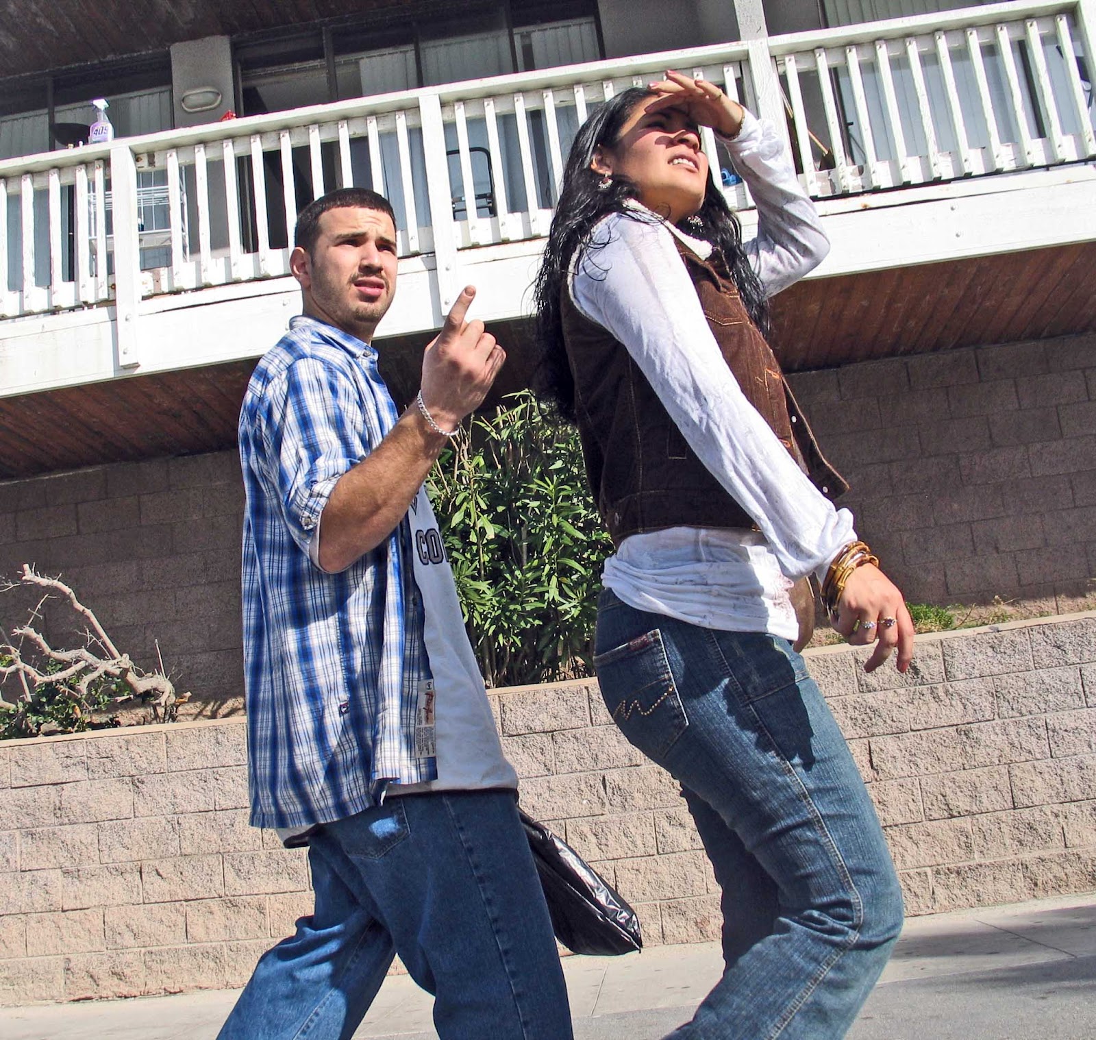I love this picture. It shows people walking and of one person being (as it were) walked. Loretta says she thinks the two guys are Vietnam vets, which sounds perfectly likely. I also found myself reminded of Midnight Cowboy – Jon Voight and Dustin Hoffman, one messed up guy looking after some even more messed up guy.