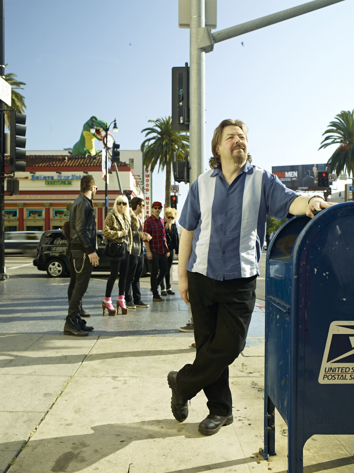 And rather a peculiar thing happened. I’m not saying I look especially good or at ease in the pictures, but in the event I felt remarkably unembarrassed and unselfconscious during the shoot. I guess it has something to do with the nature of Hollywood Boulevard. First of all, whatever you’re doing there, however odd, there are always going to be plenty of people doing much odder things: a man dressed in a SpongeBob SquarePants costume, some guy forcing his CD into the hands of unwilling tourists “Well you gotta take it now ‘cause I’ve signed it for ya,” a male/female busking duo who seemed to be making up their songs as they went along, at one point launching into the lyrics, “Lick, lick that jellybean, lick it lick it till I scream.” The chaos was oddly liberating.