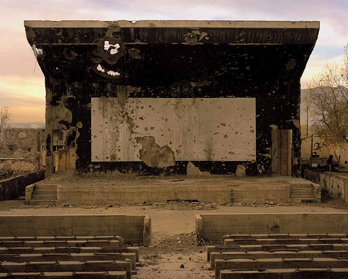 Anyway, on the blog and in the book there’s an interview with Simon Norfolk, who is a war photographer, though hardly in the tradition of Robert Capa or Don McCullin. He’s concerned, at least in part, with the aftermath of war, in ruined landscapes, blasted infrastructures, and more or less destroyed buildings, and he does manage to find some gorgeous, if obviously problematic, beauty in these subjects. He says he’s concerned with “the military sublime.”