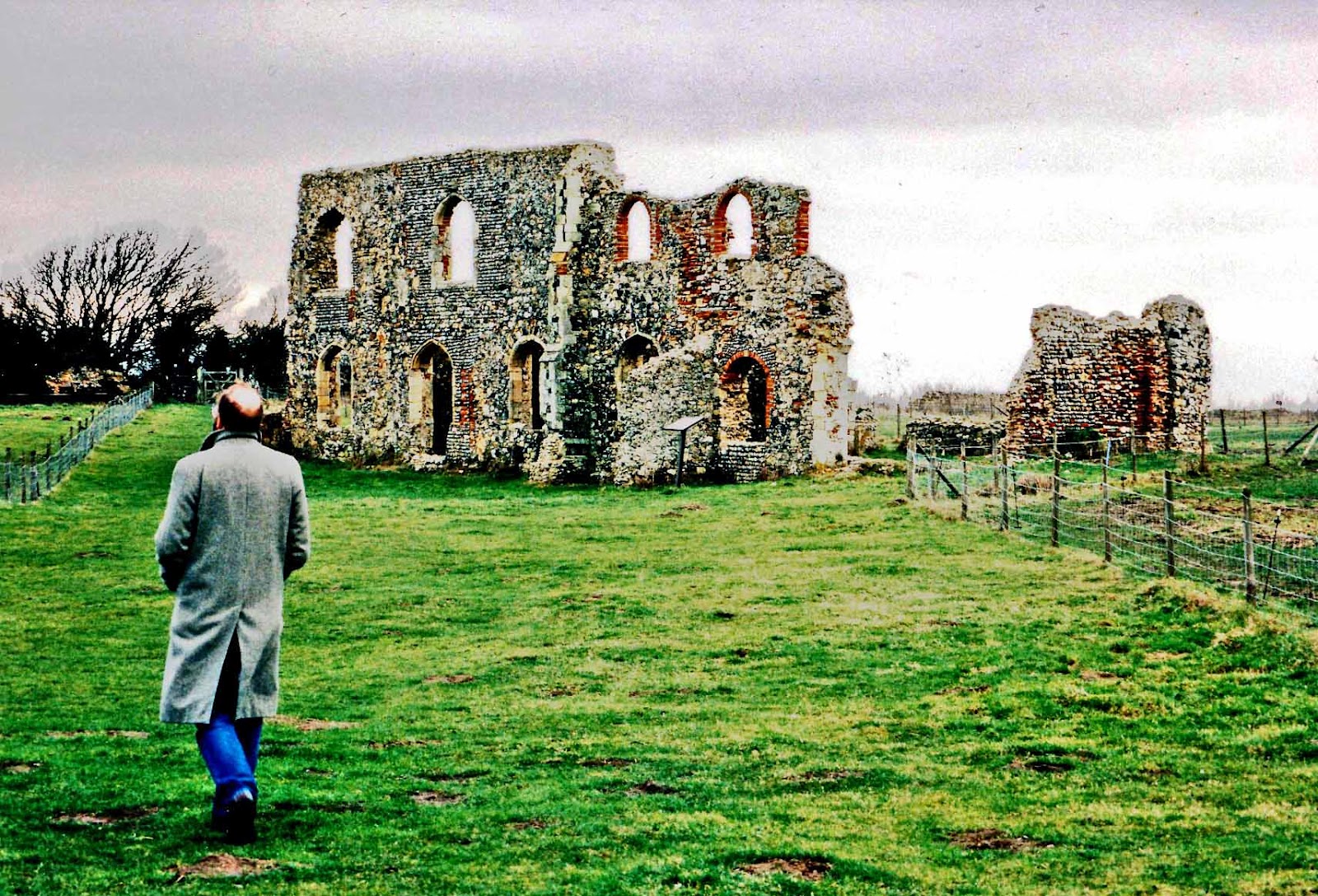 Funny what you remember. Above is a photograph featuring my regular, if increasingly occasional, walking companion Steve Kenny. We’re in the middle of a walk in Dunwich, in Suffolk, sometime in the early 2000s I think. Those are the ruins of Dunwich Abbey in the background.