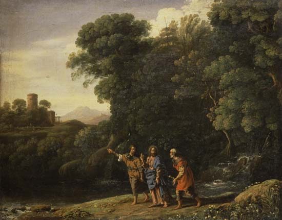 Claude apparently had no such agonies. His landscapes usually are populated to a greater or lesser degree. Sometimes the people are just another compositional element but by no means always, as in The Walk to Emmaus. That’s Jesus walking in the middle.