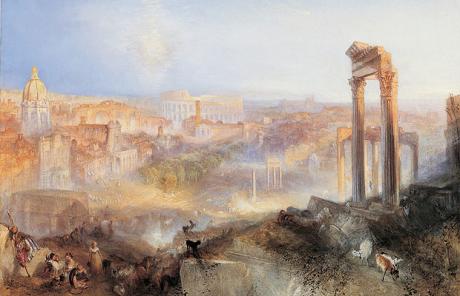 In Of the Turnerian Picturesque John Ruskin writes, “he (Turner) has admitted into his work the modern feeling of the picturesque, which, so far as it consists in a delight in ruin, is perhaps the most suspicious and questionable of all the characters distinctively belonging to our temper, and art.” That's Turner's Tinturn Abbey above, painted in 1794.