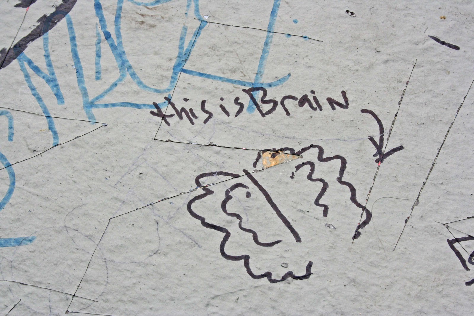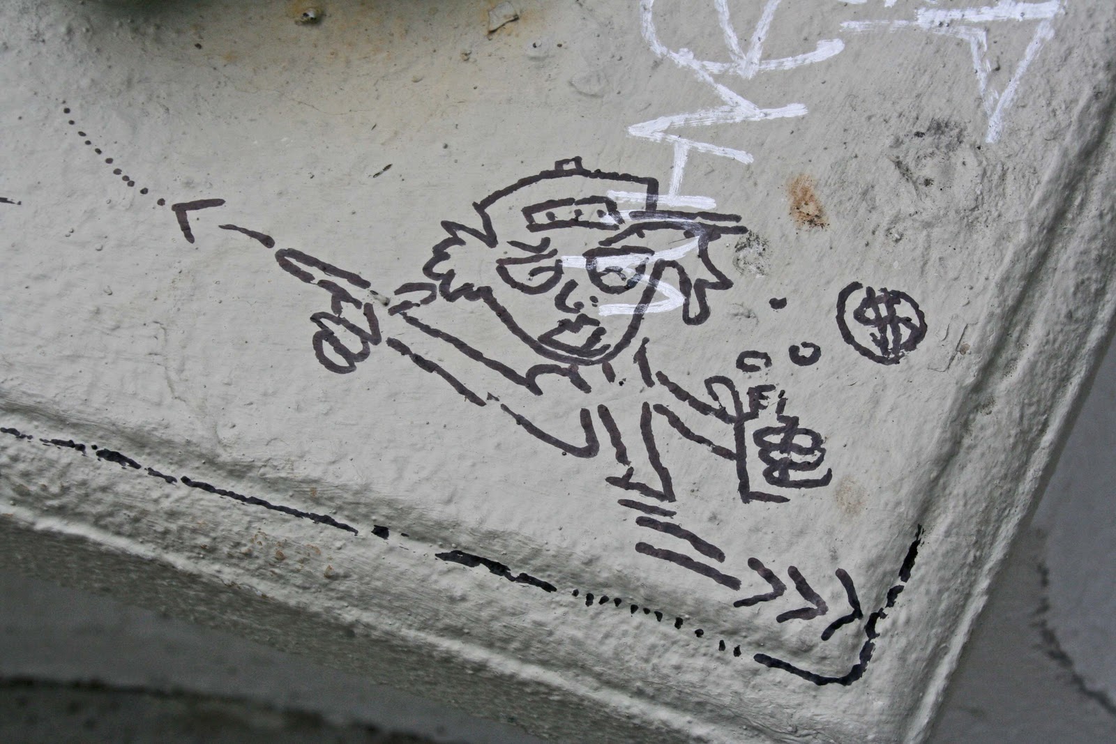 I've only ever seen a few people hanging out there, and I've never witnessed criminality, but there's plenty of evidence that at other times some drinking, drugging and partying must go on. Litter gets strewn on the steps, bottles are thrown into neighboring gardens, and there are some low-level graffiti that are very almost certainly not art, though this one might be construed as an example of psychogeographic mapping.