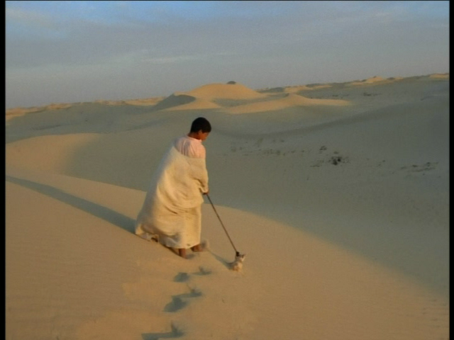 And when it comes to on-screen depictions of the desert I'm drawn to Werner Herzog's "Fata Morgana," his early "documentary" that traces an inscrutable journey down through the Sahara desert. Certainly the film does have some gorgeous desert imagery, including this shot of a little boy walking his fennec fox on a leash across the sand dunes.