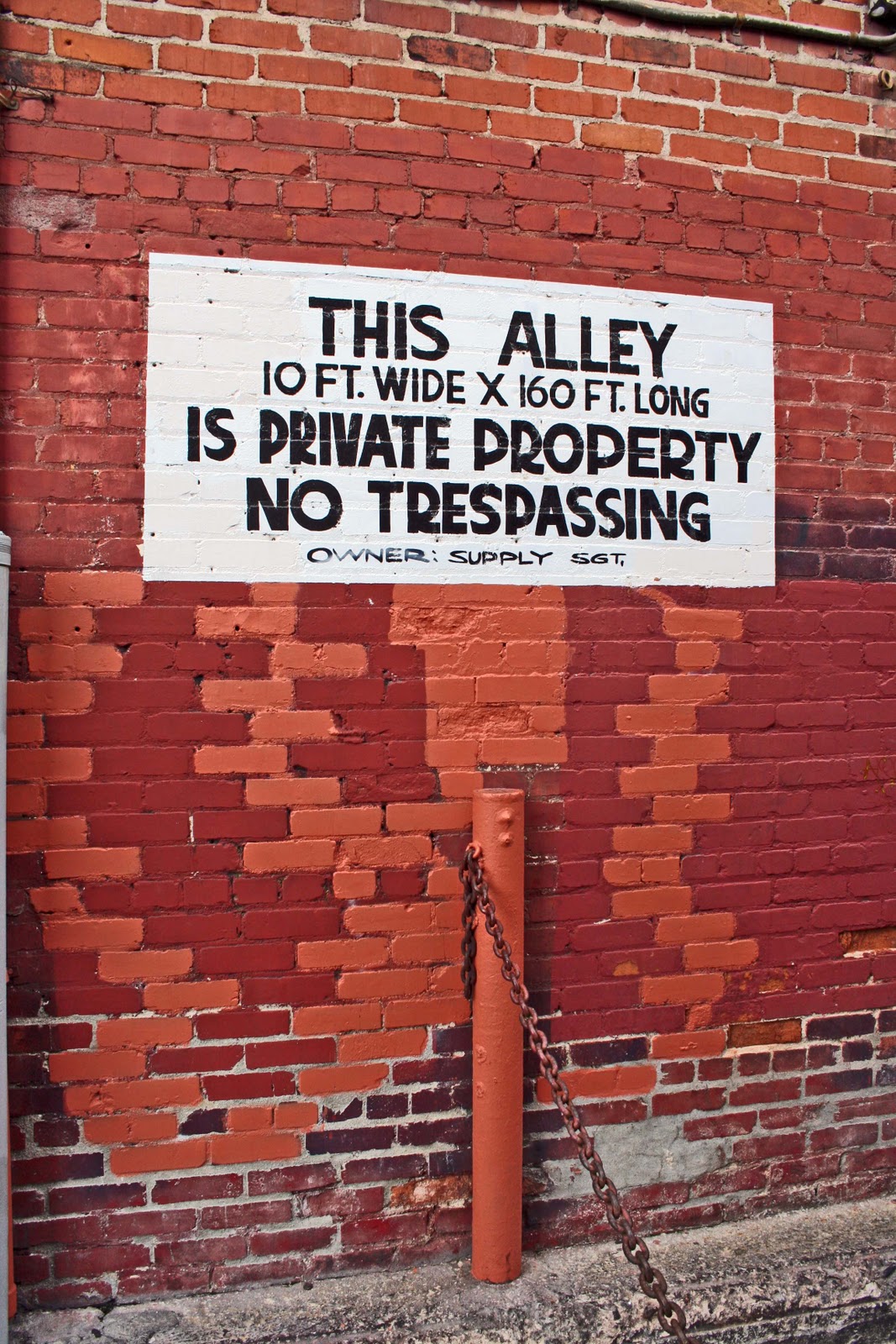 And one of the things I've realized is that not all edgelands are at the edge. Sometimes there can be junk spaces right in the middle of things. My favorite non-space in that sense is shown in the picture above, an alley right in the heart of Hollywood, that runs off Las Palmas Avenue, just below Hollywood Boulevard. It may have a name but I can't find it on any of the maps I've got. It goes down the side of Miceli's Italian restaurant, but as the sign indicates, it belongs to somebody else "Supply Sergeant" which is an army surplus store nearby. And of course the absolute joy of it is the precision with which somebody has measured, recorded, and sign-painted the dimensions of this otherwise thoroughly nondescript space.
