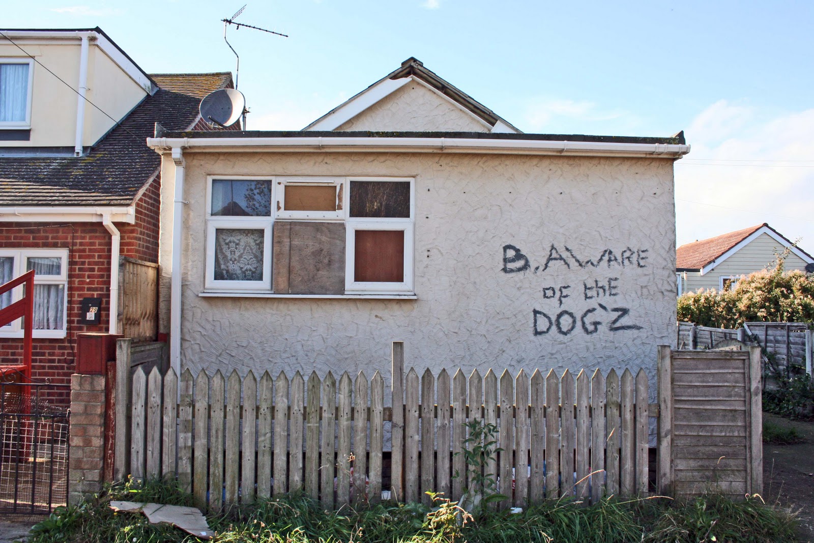 I always find caravan sites gloomily appealing, but in Jaywick it's the houses that are truly compelling. Partly it's their smallness. Some of them are absolutely minute, built as holiday chalets, as places where you didn't do much more than sleep. Now people live in them full time. And some of the dwellings do show signs of desperate living, houses that have been smashed up, in some cases burned out. On the other hand there's plenty of evidence of house-proud owners keeping up their homes and gardens in beautifully eccentric ways. In some cases you can find examples of the two elements right next to each other, which admittedly must be tough on the house-proud. The received wisdom is that the house wreckers will eventually prevail, but I wouldn't give up all hope.