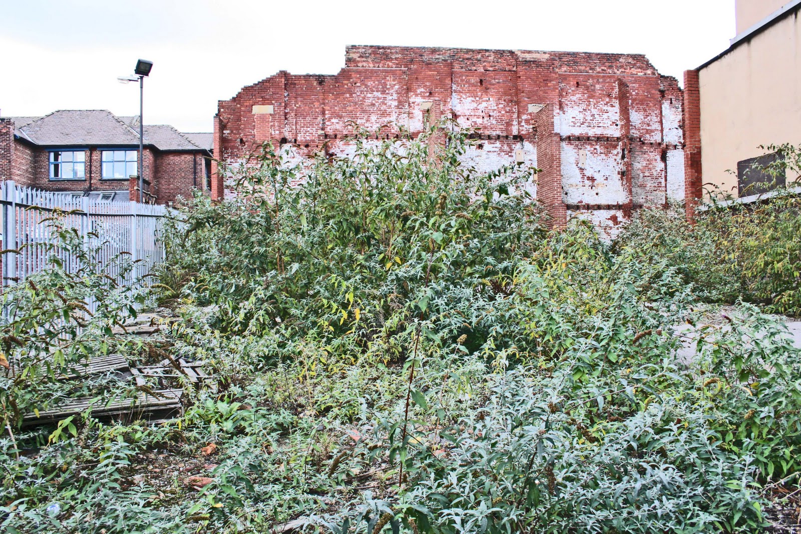 I also had a spiel about the ways in which, given a little neglect, benign or otherwise, the natural world has a way of reasserting itself in the built environment. I talked about the way creepers and palm tress spring up around the Hollywood Freeway, and there in Sheffield we saw the way that some unrealized developments had left empty patches of land around the city center, patches on which jungles of greenery were now thriving.