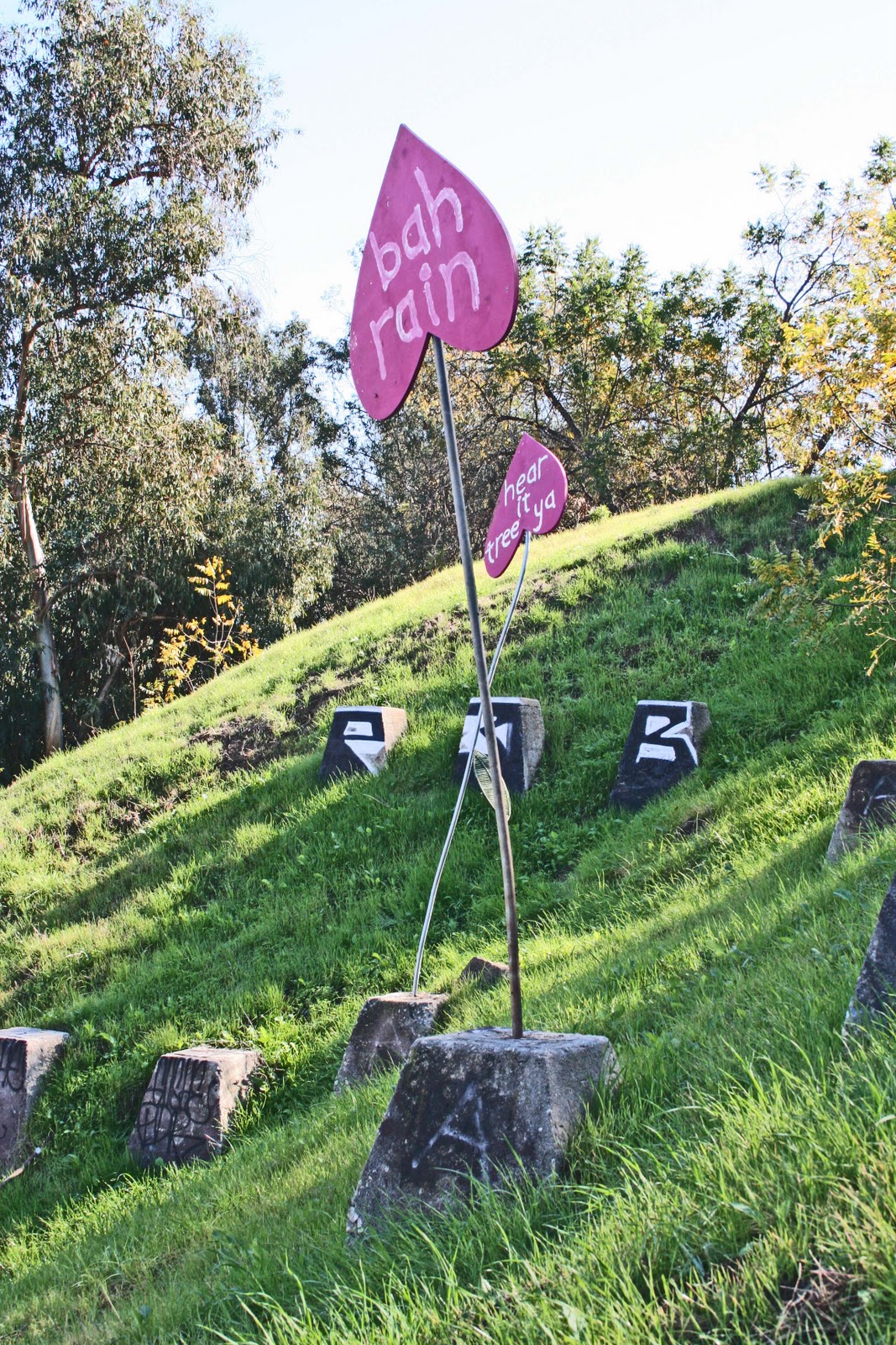 Like I said, it isn't a very long walk, there and back is just a couple of miles, although it's easy enough to extend it in various directions. Journey's end, such as it is, is an arrangement of concrete blocks set on a hillside above Riverside Drive. I have read that these are known as the Stonehenge of LA, but I'm not sure to whom. In fact this City of Los Angeles Historic Landmark # 770, and the concrete blocks were once the footings of the Pacific Electric Red Car Viaduct.
